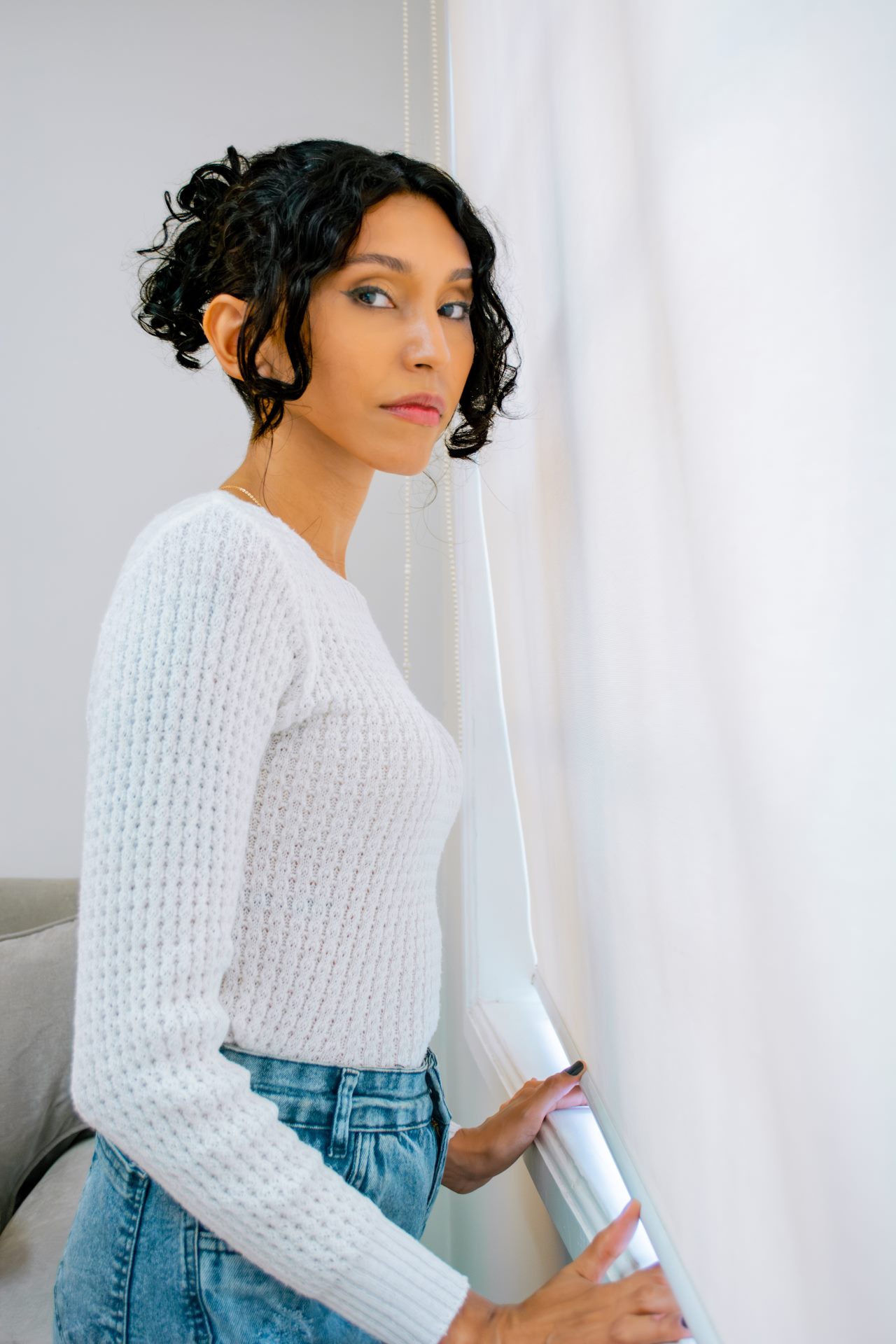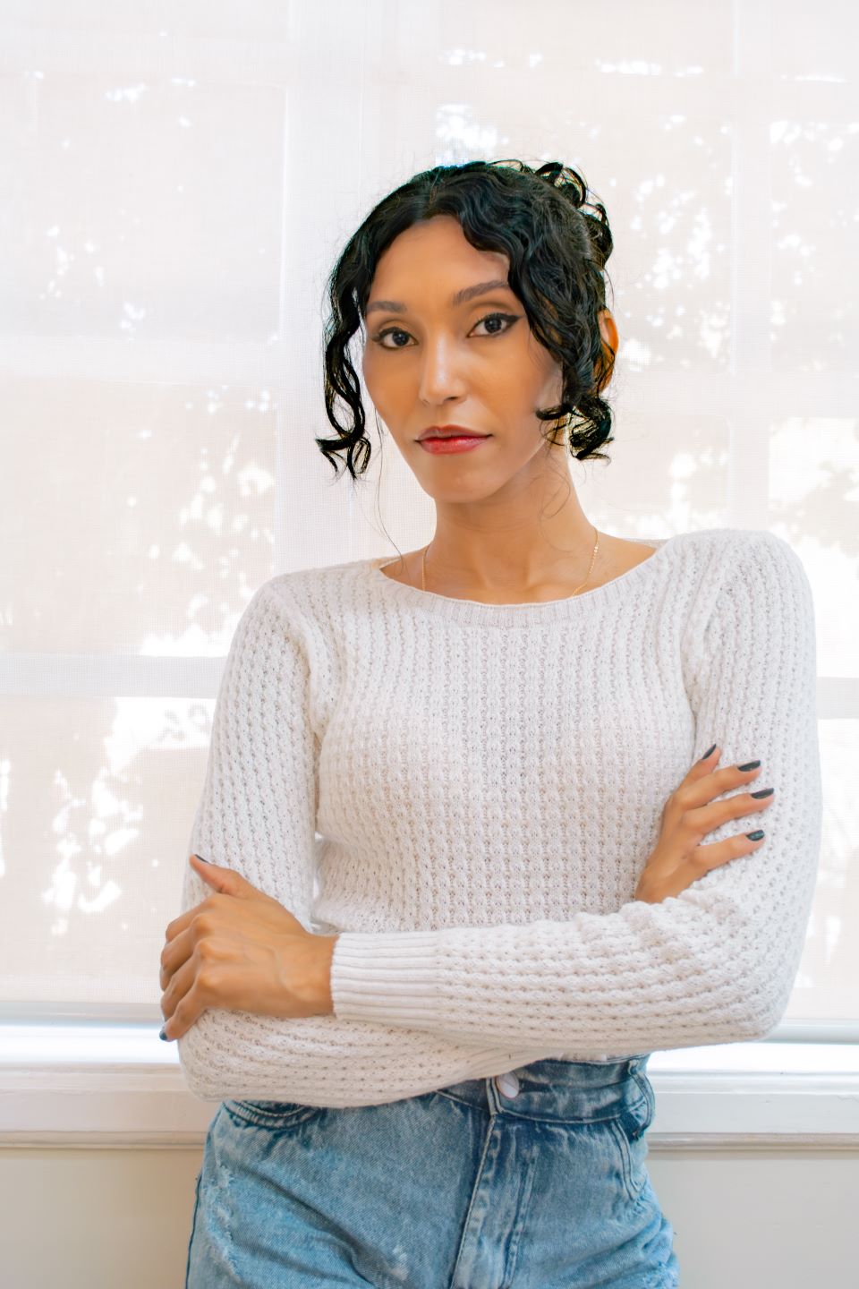 Fotografar a Nathalia foi um processo fluido e inspirador. Com looks casuais, como jeans e malhas confortáveis, exploramos diferentes ambientes, sempre guiados pela luz natural. Meu papel como fotógrafo de mulheres em Niterói é dirigir a sessão de forma sutil, sugerindo poses que valorizem sua beleza e capturando os momentos intermediários: o sorriso que escapa, o olhar pensativo e o gesto espontâneo.